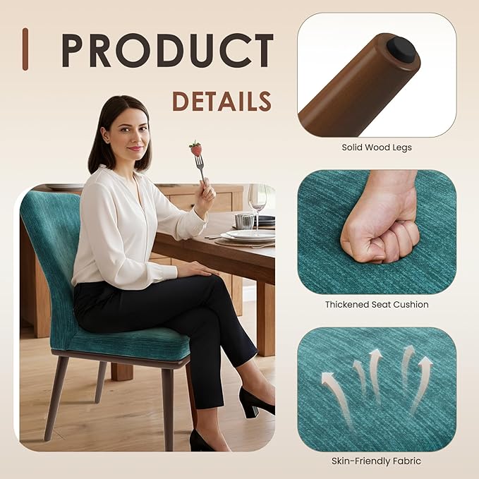 - PREMIUM EASY-CLEAN FABRIC: Wrapped in a breathable fabric of wood dining chairs that masterfully balances softness with practicality. The durable, stain-resistant kitchen chairs' upholstery is effortlessly maintained and adds a modern accent that complements a wide range of interior décors.