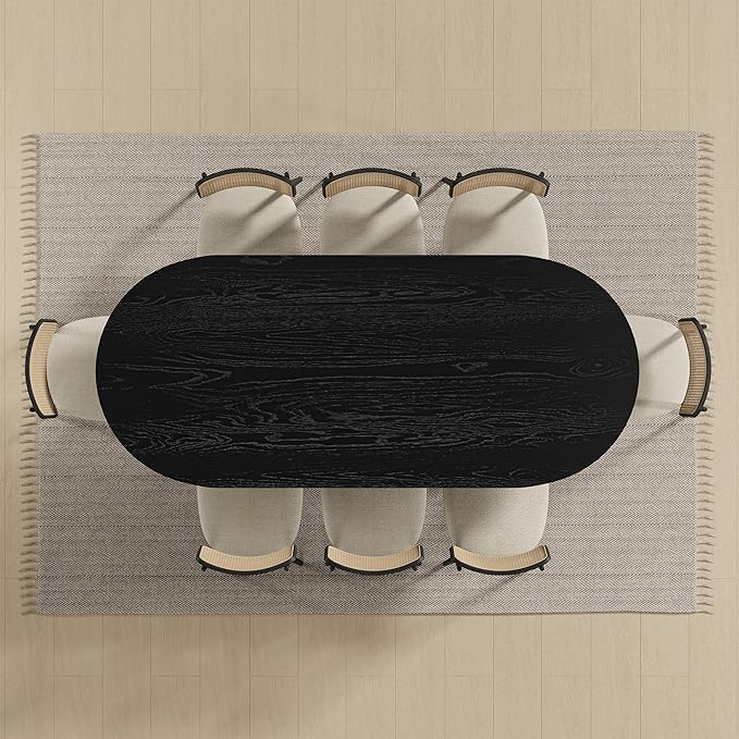 Casaphoria 79" Dining Table for 6, Wood Kitchen Table with Scratch-Resistant Top & V-Shaped Base, Modern Farmhouse Oval Dining Table for Living Room, Kitchen, Easy Assembly, Black