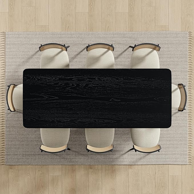 Casaphoria 79" Dining Table for 6, Wood Kitchen Table with Scratch-Resistant Top & V-Shaped Base, Modern Farmhouse Rectangular Dining Table for Living Room, Kitchen, Easy Assembly, Black