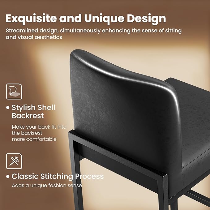 - 【Modern and Elegant Style】: The barstools boast a sleek and modern design that effortlessly complements various decor styles. Whether you have a contemporary or traditional setting, these barstools will enhance the aesthetic appeal of your space
