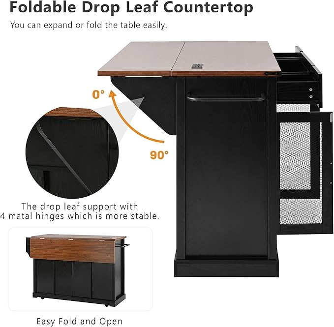 - [Extendable Countertop for Versatile Use] The drop-leaf design is undeniably ideal for small kitchens or homes with limited space. A folding, rolling kitchen island countertop provides extra workspace and storage when needed, and can be easily folded away to create more room.
