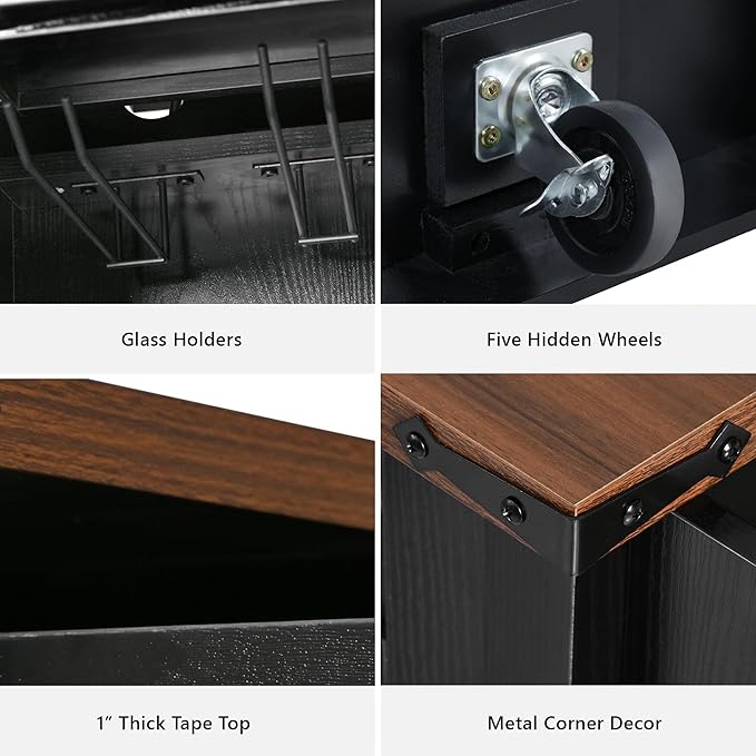 - [Sturdy and Moveable Kitchen Island ] CARB Phase II certified MDF + Particle Board. It has a robust structure and a 1” thick tabletop that can bear up to 400lb. This mobile kitchen island has five concealed wheels(2 lockable) for easy access and adjustment. Wheels can be omitted if mobility isn't needed.