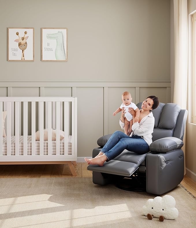- 【Versatile Comfort Experience】The Electric Recliner Chair features built-in heating and vibration functions to reduce fatigue from prolonged sitting. It offers 270° swivel and 30° rocking for customizable comfort—perfect for watching TV, gaming, caring for kids, or as a thoughtful gift.