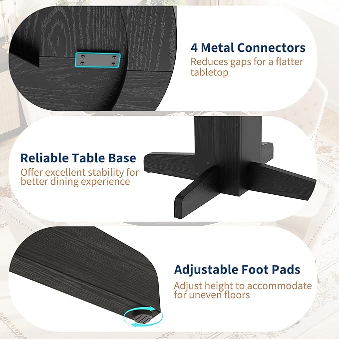 - Premium Quality: With a sturdy wood pedestal base, the dining table boasts exceptional stability. The additional flat panel between the tabletop and base eliminates wobbles, ensuring durable use for dependable daily dining.