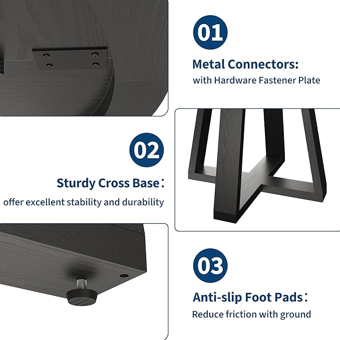 - Stable & Durable: The 4 tabletop panels use traditional bolts, extra flat metal connectors and added square reinforcement plates for stronger support. It has no gaps or loose parts, made of quality wood with a cross base