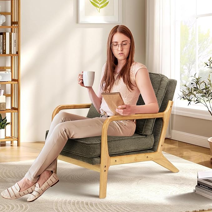 - VERSATILE STYLE & COMFORT: Our Accent Chair combines style and function, designed to add a touch of elegance to any room. With its unique silhouette, sofa cushion, and sturdy frame, this chair serves as a perfect statement piece for your living room, bedroom, or reading book