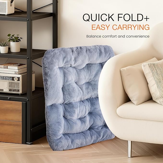 NEWBULIG Comfy Chair for Adults, Soft Faux Fur Foldable Lounge for Bedroom Living Room Dorm Rooms Flexible Reading Chair for Teens, Large Size, Square Shape